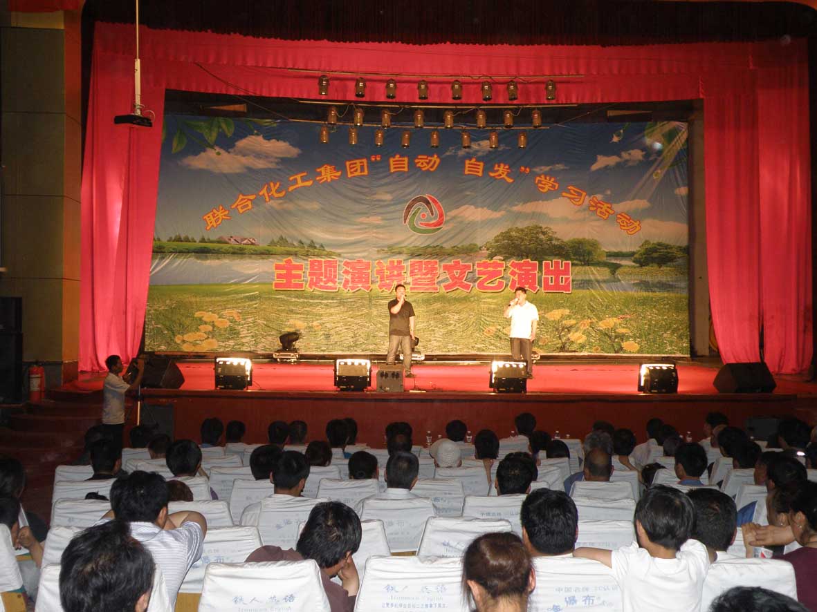 为丰富子公司广大干部职工的业余文化生活,培育和树立职工自动自发的精神,促进全公司内部职工互相沟通交流,2012年5月4日至5日,在公司工会副主席王曙光的带领下,公司巡回演出团到子公司新泰联合化工、联合丰元进行巡回演出。
