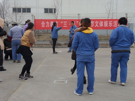 2016年3月8日上午,在国际三八妇女节来临之际,为丰富节日期间广大女职工的业余文化生活,活跃节日气氛,展示公司广大女职工积极向上和拼搏进取的精神风貌,公司在办公楼联合会堂前举办了健身娱乐比赛,来自公司各支部的56名女职工参加了比赛。 本次活动共设立了踢毽子、趣味保龄球、跳绳、夹波珠等四个项目。经过参赛选手的激烈角逐,翟乃凤等4人分别获得四个项目的一等奖,张存华等8人,获得二等奖,王秋玲等24人获得三等奖。 三八妇女节健身娱乐比赛获奖名单 踢毽子 一等奖:翟乃凤 二等奖:张存华、刘学芹 三等奖:齐 娜、王树叶、张明桂、左进新、张敬琴、刘 玲 趣味保龄球 一等奖:刘学芹 二等奖:梁雪梅、崔 洁 三等奖:陈晓燕、董伟伟、王晓燕、李 瑛、李长英、唐军华 跳绳 一等奖:崔基莹 二等奖:齐元菊、陈玉婷 三等奖:周 琳、张明桂、李成云、杜 艳、王秋玲、刘 颖 夹波珠 一等奖:陈 丽 二等奖:张静梅、齐晓霞 三等奖:周晓琴、董伟伟、杜 艳、曹秀娟、陈客凤、刘 颖