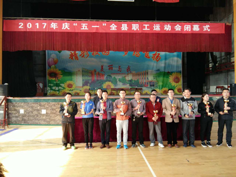 2017年4月20日至21日,我公司积极参加由县总工会、县教体局举办的2017年庆“五一”全县职工运动会,由我公司孔令亮、杨军等人组成的合力泰代表队顽强拼搏,取得了羽毛球比赛的优异成绩。图为比赛现场和颁奖现场照片。