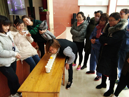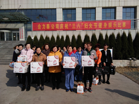 38上午,在国际三八妇女节来临之际,为丰富节日期间广大女职工的业余文化生活,活跃节日气氛,展现公司广大女职工心系企业、爱岗敬业、健康向上、奋发有为的精神风貌,公司在办公楼前举办了庆“三八”健身娱乐比赛,近百名女职工参加了比赛。
