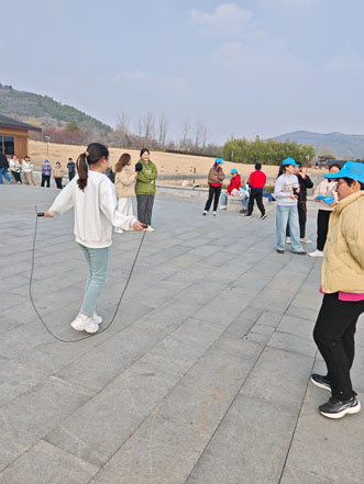 最后,充满趣味的投沙包、踢毽子和跳绳比赛在尼山脚下热闹开场。投沙包区域,女职工们瞄准目标,奋力投掷,沙包在空中划过一道道优美弧线,欢呼声、喝彩声此起彼伏;踢毽子场地,五彩毽子在她们的脚尖上下翻飞,展示出了高超的技巧,令人目不暇接;跳绳比赛更是精彩,她们身轻如燕、速度惊人。每一个瞬间大家都全力以赴,现场洋溢着欢乐与活力。