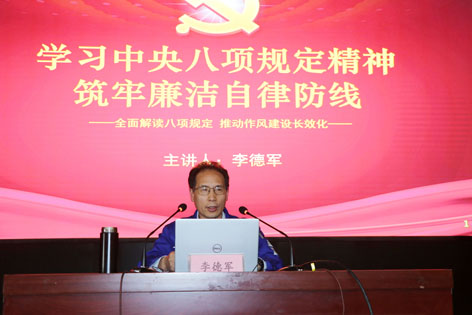 为深入学习贯彻中央八项规定精神,进一步强化党员干部职工的纪律意识和规矩意识,推动作风建设常态化、长效化,4月15日,公司党委书记、董事长李德军以“学习中央八项规定精神 筑牢廉洁自律防线——全面解读八项规定 推动作风建设长效化”为主题,在职工会堂为全体党员、入党积极分子讲授专题党课。