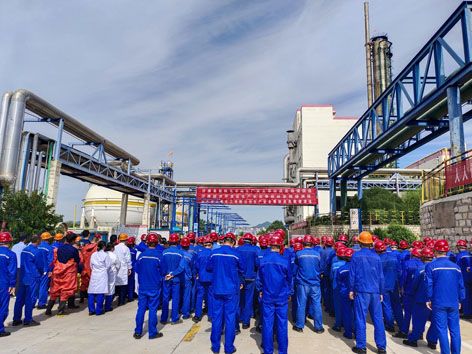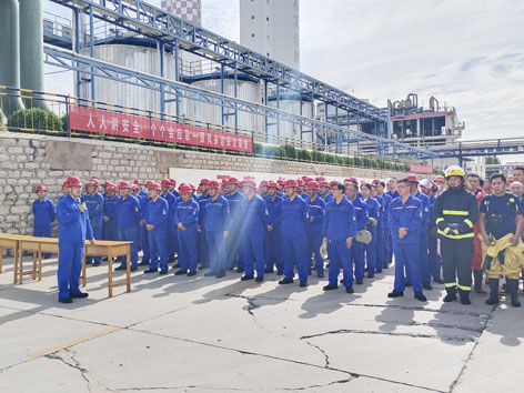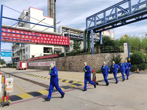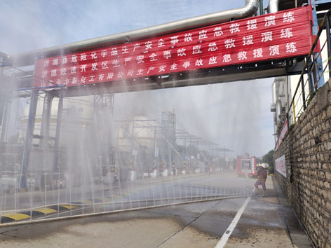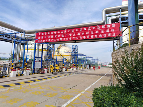 根据公司“安全生产月”活动安排,6月21日上午,公司在液氨球罐区成功组织开展了2025年度生产安全事故综合应急救援演练,100余名员工观摩了演练。