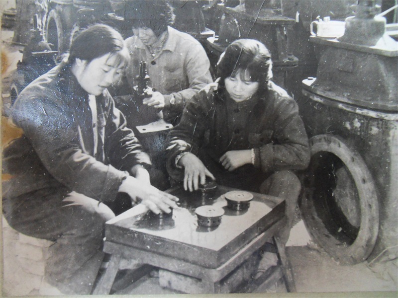 回收队师傅们在修复研磨阀门片