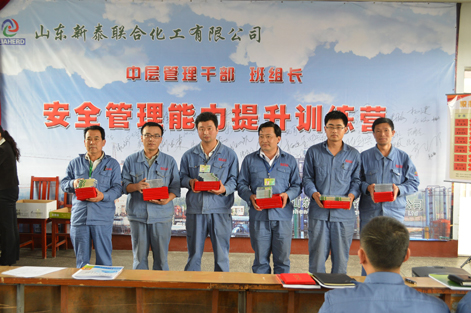 为提高公司中层管理人员的安全管理能力,新泰公司邀请建大安全技术有限公司的相关老师来公司进行安全管理专题培训。建大安全技术有限公司根据新泰公司管理现状采用咨询式安全培训的方式,主要对中层管理人员安全意识及观念转变进行培训强化,着重培养化工生产中科学的安全管理思维模式,经过建大公司两个多月的培训,新泰公司中层管理人员的安全管理技能提升明显,组织、协调及激励员工的能力有所提高,提升了中层管理人员整体综合管理素质。529日新泰公司“中层管理干部安全管理能力提升训练营”培训圆满结束,评选优秀学员7名,优秀团队1个。(图为:训练营颁奖现场)