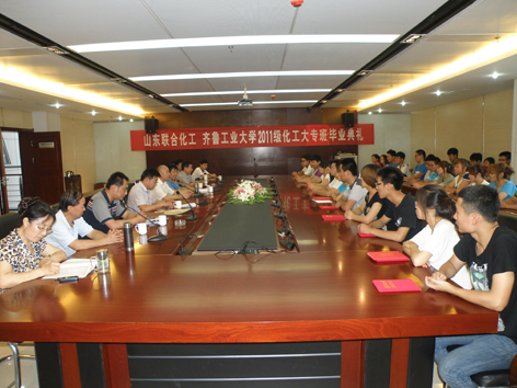 2013年7月6日,齐鲁工业大学2011级化工大专班毕业典礼在公司办公楼三楼多媒体会议室召开,齐鲁工业大学成教学院王连增书记、王介峰院长,公司董事长王宜明、监事会主席王崇德出席会议,王宜明董事长在典礼上作了重要发言。