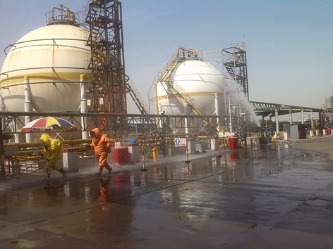 按照公司要求,5月15日上午,原料车间供氨工段在液氨罐区举行第二季度岗位应急处置方案演练。本次演练重在锻炼、检验单班操作人员对突发事件的处置能力,所有演练内容由单班(4人)独立完成,演练过程求真、务实,但略显粗糙;演练人员对应急救援流程、应急救援职责、事故处理步骤、消防设施的使用较熟悉,但个人保护器材的使用如空气呼吸器、隔离服穿戴上暴露出佩戴缓慢的问题。针对演练中暴露出的问题,车间将在今后日常培训中引起重视,加强训练,有效控制事故的发生,确保重大危险源的安全运行。图为演练现场 (原料车间 傅友山)